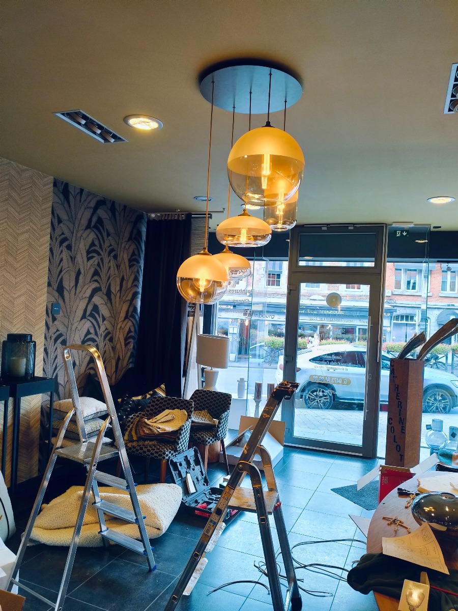Nous travaillons avec des marques belges et européennes reconnues pour leur design et leur qualité, afin de valoriser vos espaces avec goût. Appliques murales, suspensions, spots encastrés : nous vous conseillons selon l’usage, la pièce et vos envies.